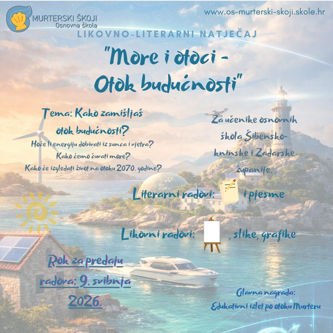 Osnovna škola Murterski škoji objavljuje poziv za sudjelovanje u likovno-literarnom natječaju „More i otoci – Otok budućnosti“, namijenjenom učenicima osnovnih škola s područja Šibensko-kninske i Zadarske županije.